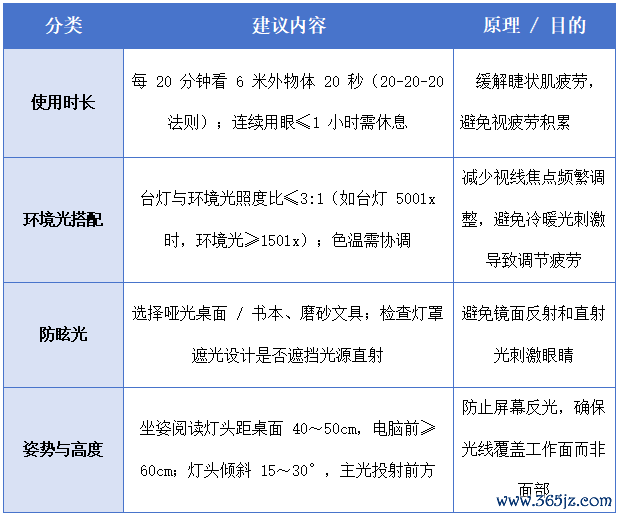 使用台灯规范与护眼注意事项(根据代彩红建议制图)